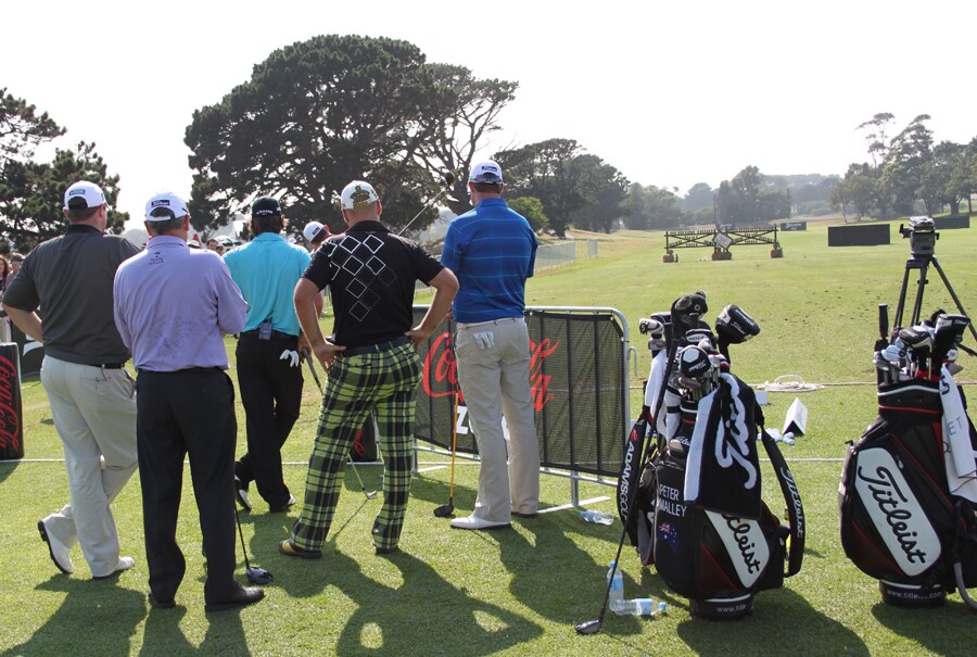 Titleist Brand Ambassadors Greg Chalmers, Jarrod Lyle and Peter O'Malley joined Titleist golf ball Loyalist Aaron Baddeley on the range for a shootout Tuesday.