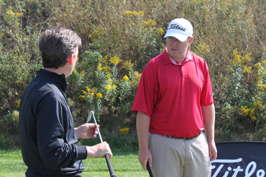 Titleist Fitting Expert, Chad Cole running through iron shaft options with Ryan Bastien of St. Andrews East.