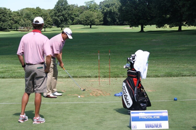 Titleist Brand Ambassador Johnson Wagner is in the football spirit as he works on hitting his Titleist Pro V1x through the uprights.