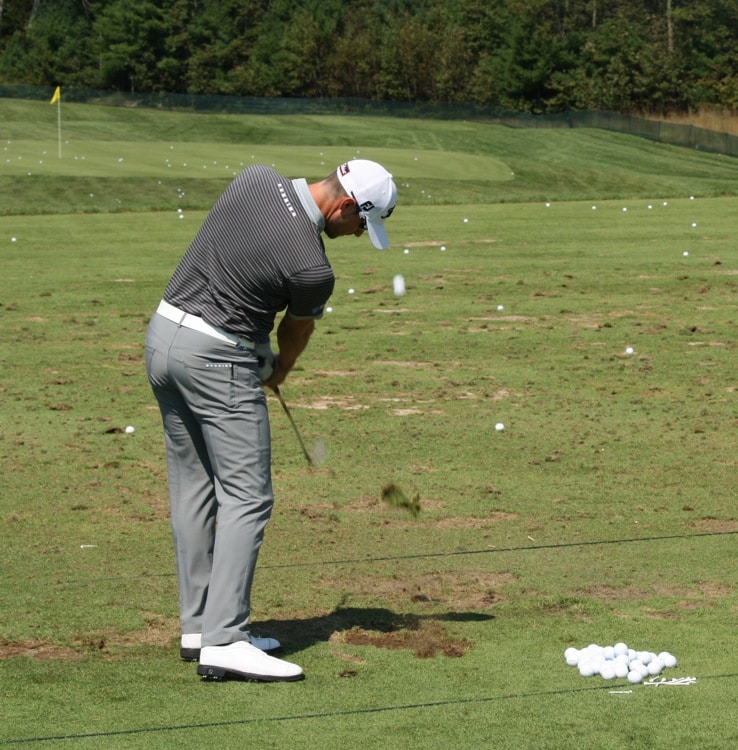 Titleist Brand Ambassador Kyle Stanley begins his range session by hitting some Vokey wedges.