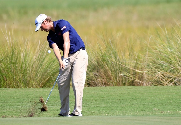 Titleist Brand Ambassador Webb Simpson blasts his Pro V1x golf ball toward the 13th green at Sea Island's Seaside Course.