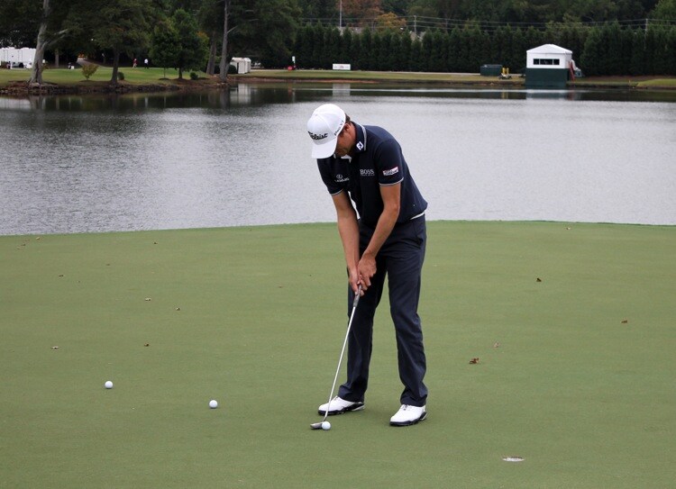 Over on the putting green, Titleist Brand Ambassador Nick Watney puts in some work with his Scotty Cameron Newport Fastback.