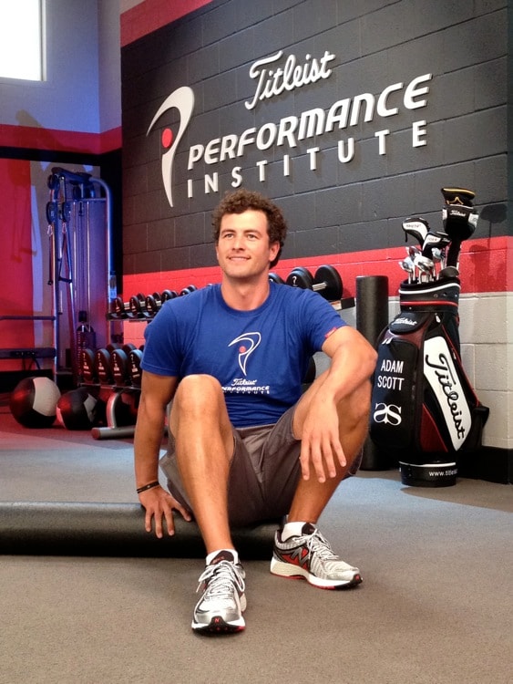 Titleist Brand Ambassador Adam Scott gets in some stretching before filming his Season 8 episode of "Golf Fitness Academy."