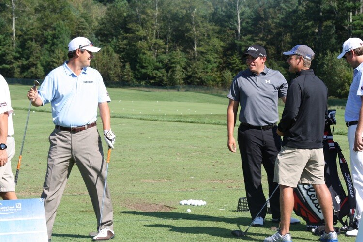 As the huddle breaks, Johnson Wagner is off to get some work in with his Vokey wedges.