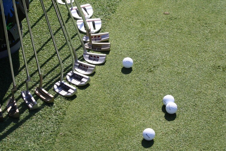 Time to make our way to the practice green to check out some Scotty Cameron putters.