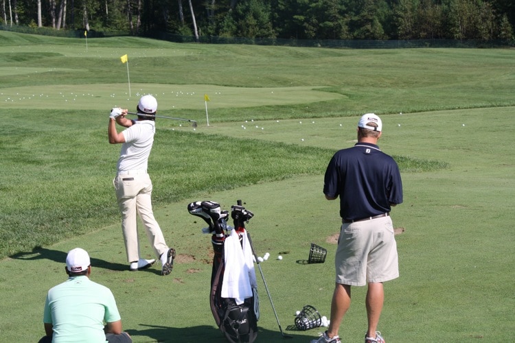 A little further down the range at TPC Boston, Titleist Brand Ambassador Ryuji Imada gets his reps in.