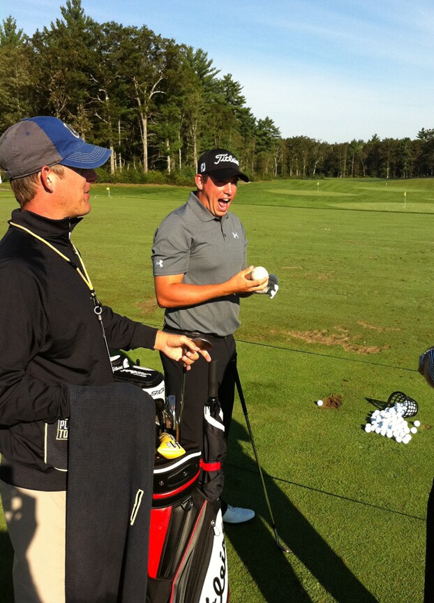 Scott shows off the foul ball he caught at Tuesday night's Red Sox-Yankees game at Fenway Park.
