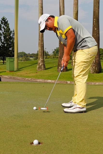 Young Thai Pro V1x loyalist Panuphol Pittayarat getting some putting practice in.