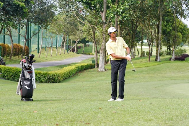 Titleist Brand Ambassador Digvijay Singh getting some chipping practice in.
