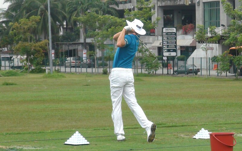 Defending CIMB Asia Pacific Classic Champion and Titleist Brand Ambassador Ben Crane hitting some balls on the range.