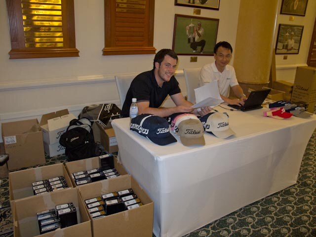 A combination of the Titleist Asian Tour and European Tour Leadership Teams were on hand to help players this week. Here we see Ryan Hunt and George Shay hard at work making sure everyone has enough balls and gloves.