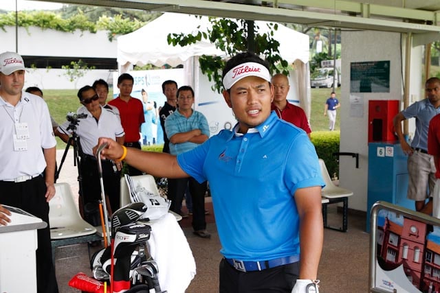 Chinnarat started by hitting some shots for the attendee's and talking them through his pre shot routine.