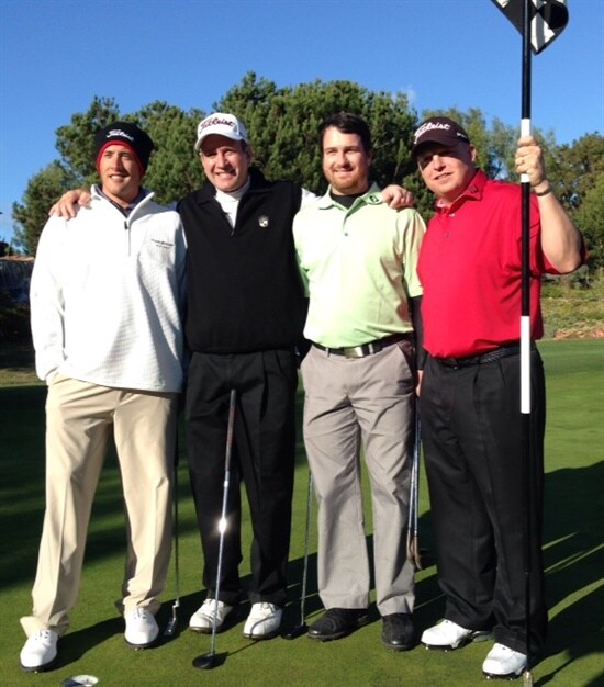 Our group for the San Diego TT event. Brent W., Vern, Bryce, and myself. For the TT fellas that did not see Brent shivering the entire time he was at Del Mar, he got back to Hawaii and on Sunday proceeded to shoot 30/38 - For a smooth 78 at Kapolei. Guess we know what weather he likes playing golf in.