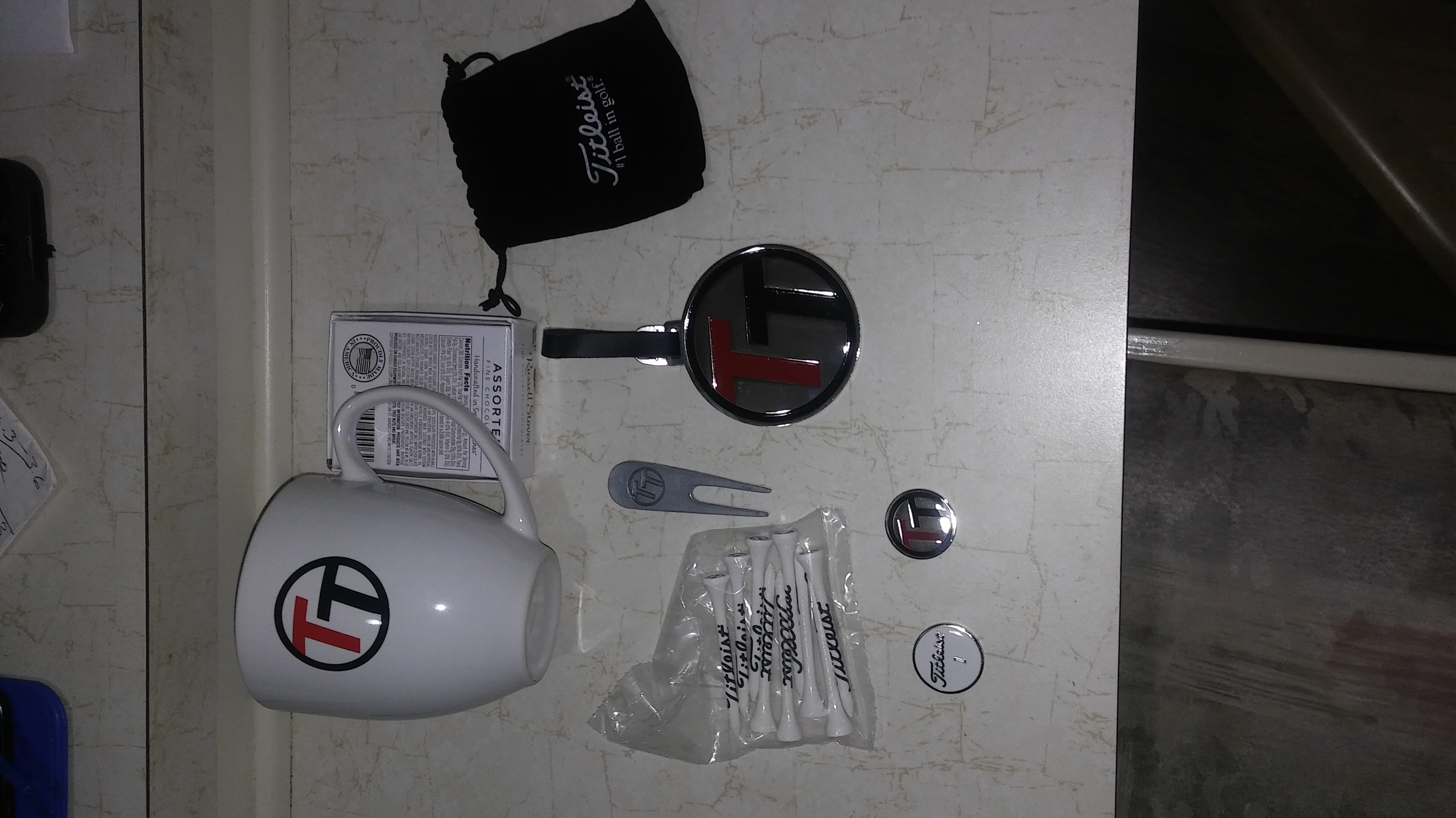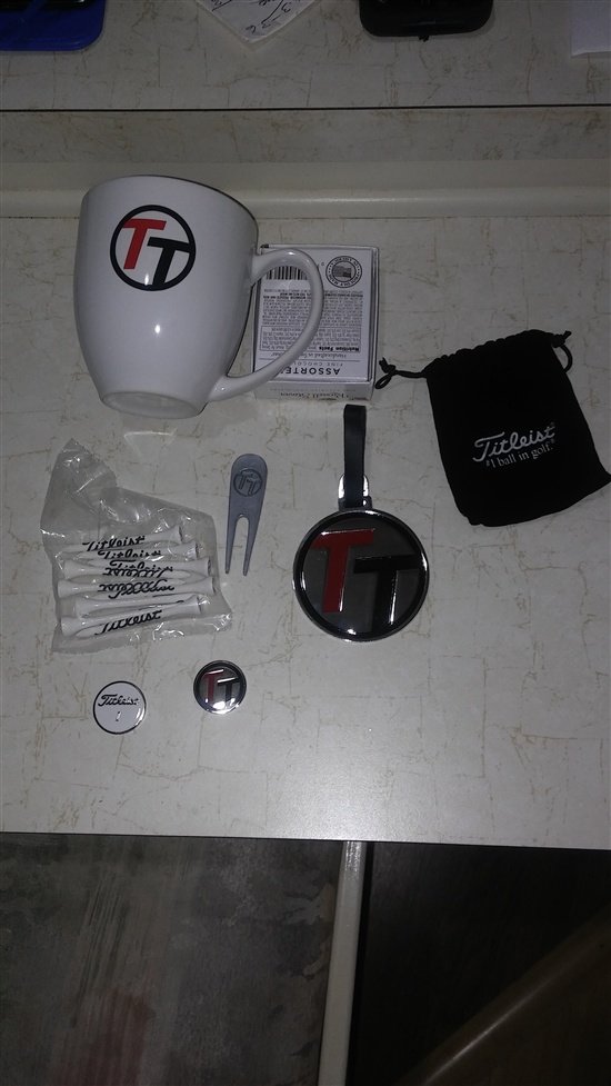 That is a super package Dave, grats. The only thing I have in that picture is the Titleist #1 ball marker. Maybe, someday..... we can all hope. Enjoy your gifts and use/wear them proudly.